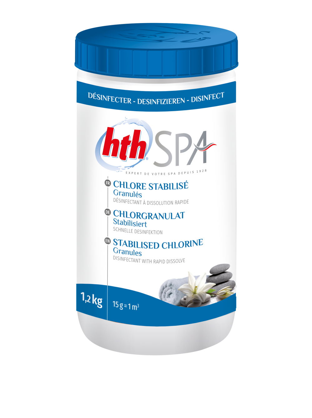 Chloration permanente pour la destruction des bactéries, virus, champignons et algues des eaux de spas